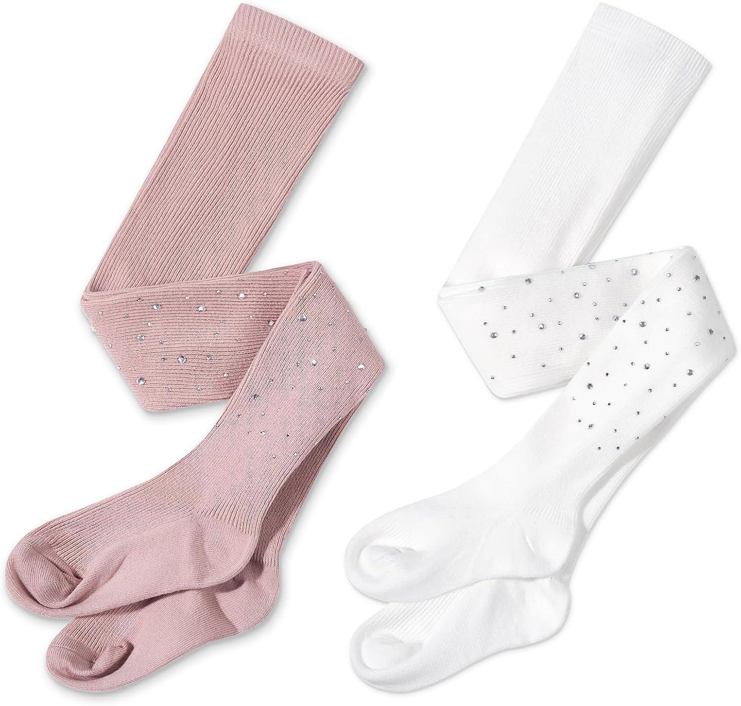 LOLANTA Girls Cable Knit Sparkle Tights Kids Seamless Footed Ribbed Cotton Stockings Warm School Uniform Leggings Pantyhose(Pink+ White)