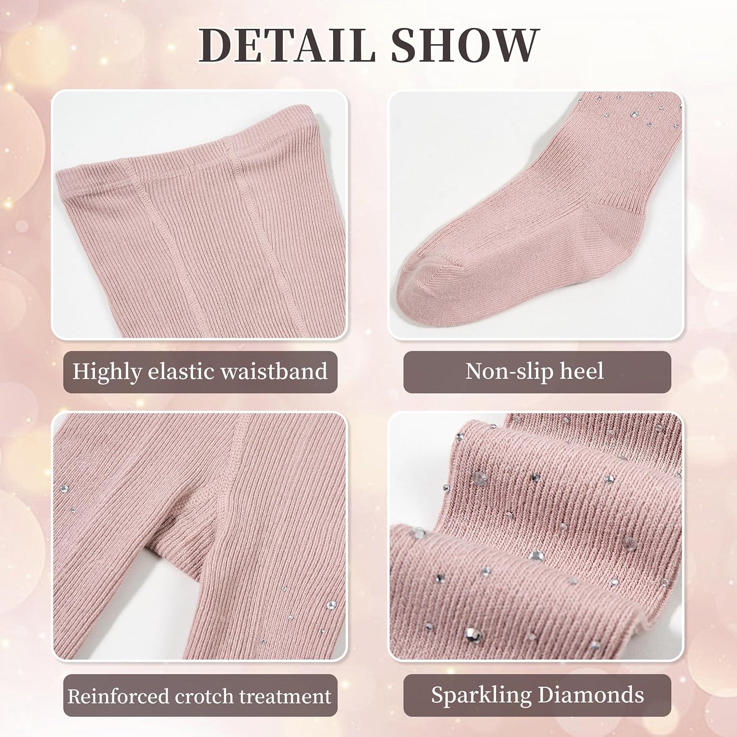 imageLOLANTA Girls Cable Knit Sparkle Tights Kids Seamless Footed Ribbed Cotton Stockings Warm School Uniform Leggings PantyhosePink White