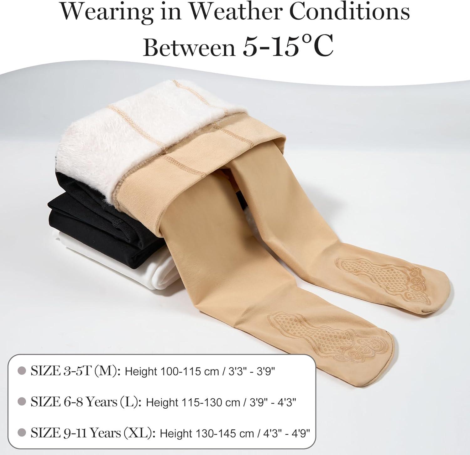 LOLANTA Girls Dance Tights Anti-slip Footed Super Soft Stockings for Kids Stretchy Ballet School Student Pantyhose(White Fleece)