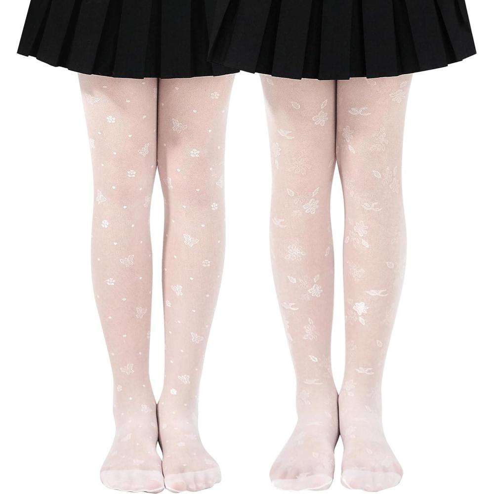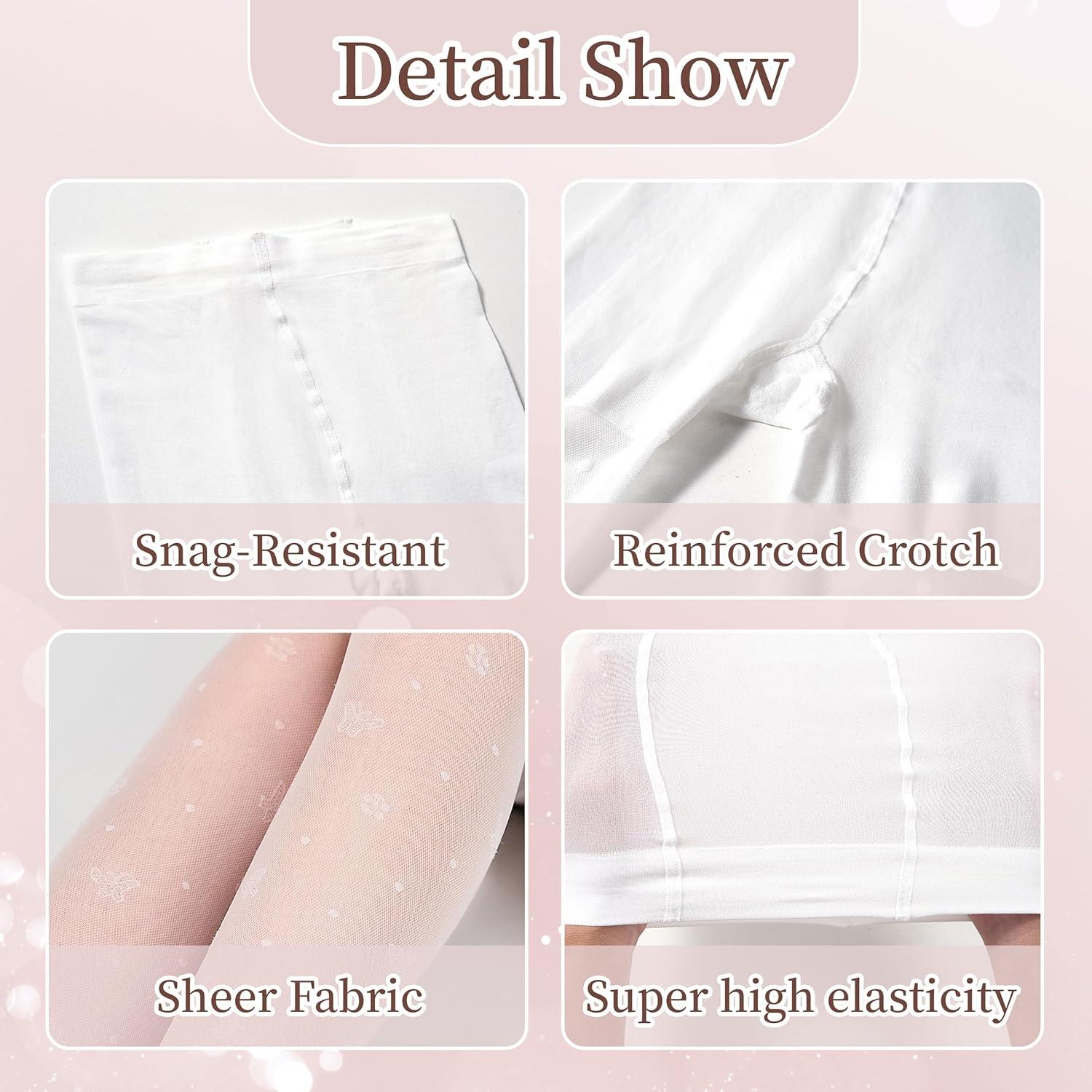 imageLOLANTA Girls Sheer Tights 2 Pack Heart Polka Dot Patterned Stockings Kids Soft Lightweight Stretchy Pantyhose 311YearsWhite Butterfly  White Flower