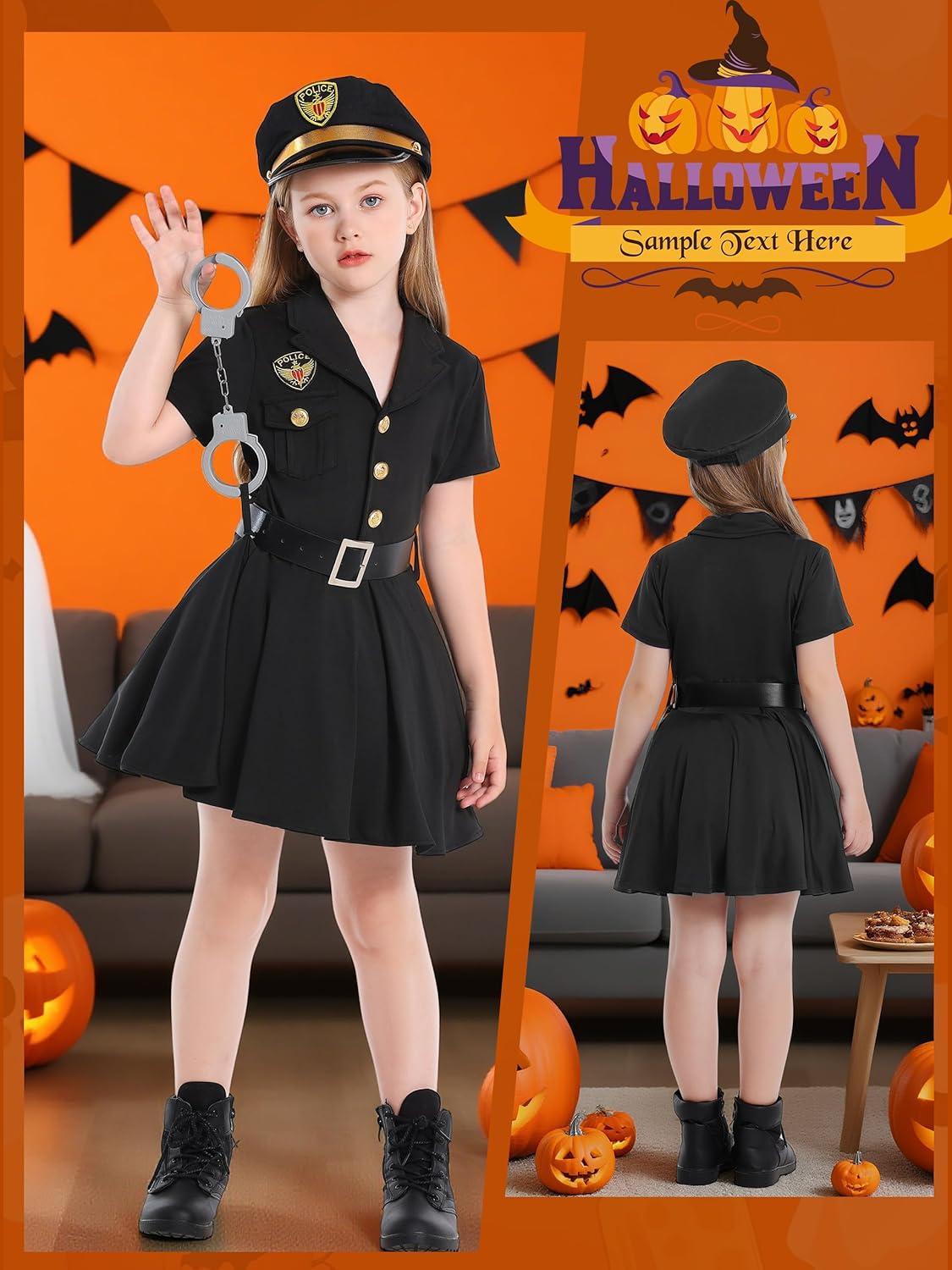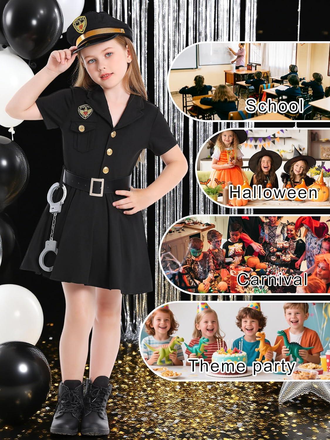 LOLANTA Kids Police Officer Costume Coslay Outfit Boys Girls Cop Uniform Career Dress Up Clothes(Black Dress)