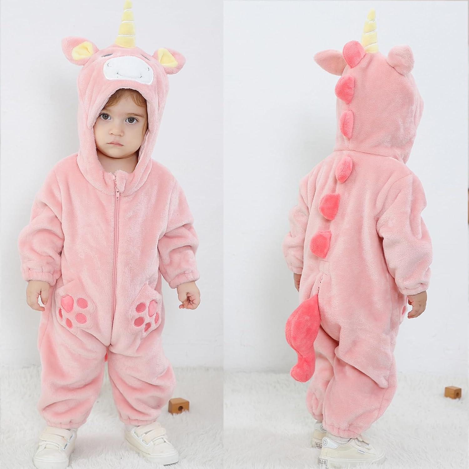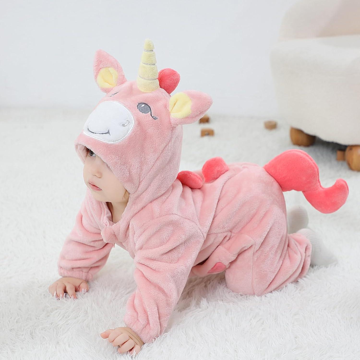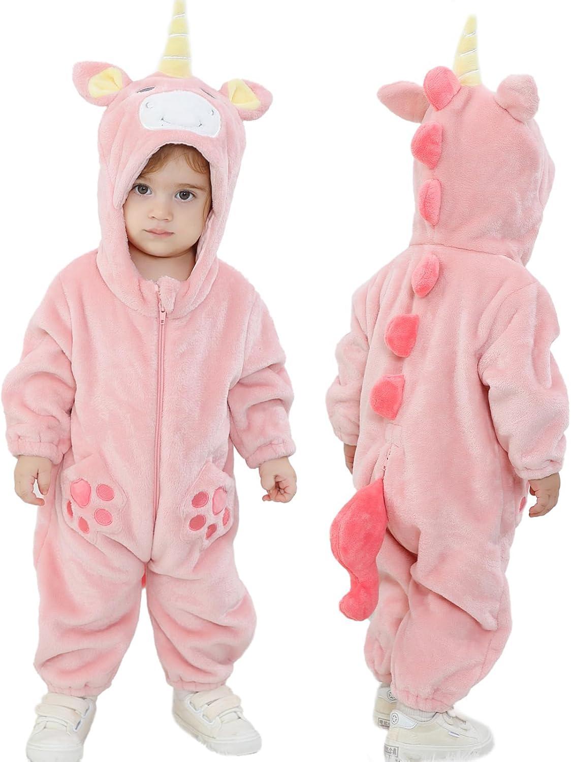 imageLOLANTA Toddler Girls Onepiece Jumpsuit Infant Fleece Hooded Rompers Unicorn Costume Halloween Christmas Birthday GiftsPink Unicorn