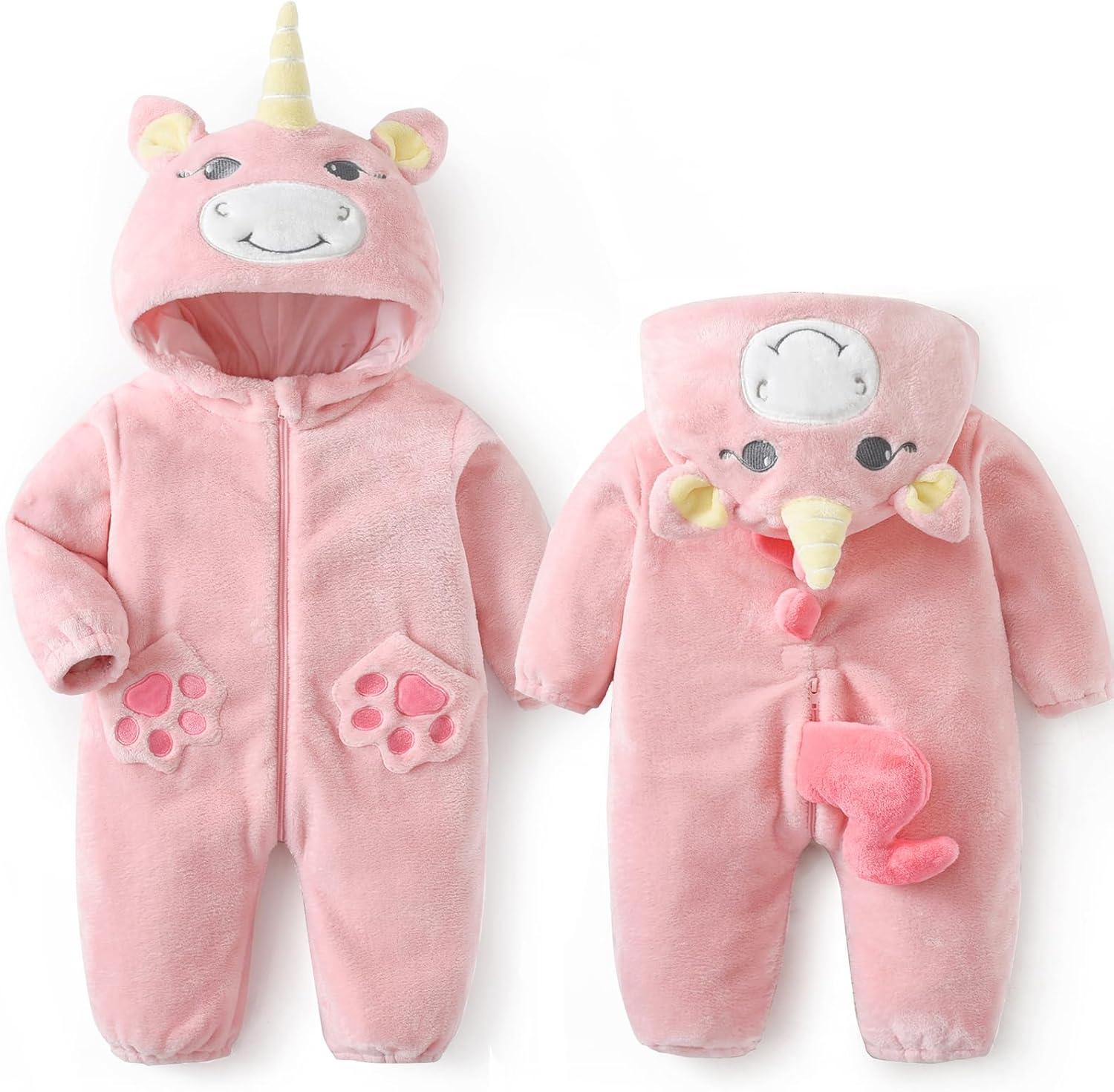 LOLANTA Toddler Girls One-piece Jumpsuit Infant Fleece Hooded Rompers Unicorn Costume Halloween Christmas Birthday Gifts(Pink Unicorn)