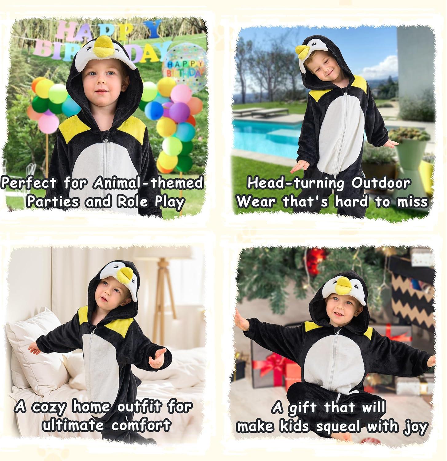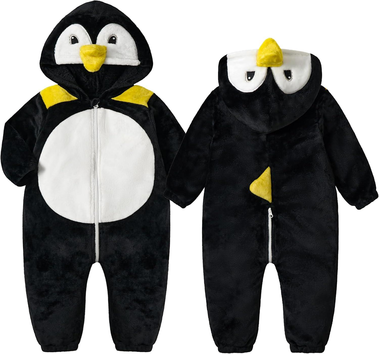 LOLANTA Unisex Baby Animal Costumes Toddler Boys Girls Hooded Jumpsuit Kid Halloween Christmas Birthday Gifts(Penguin)