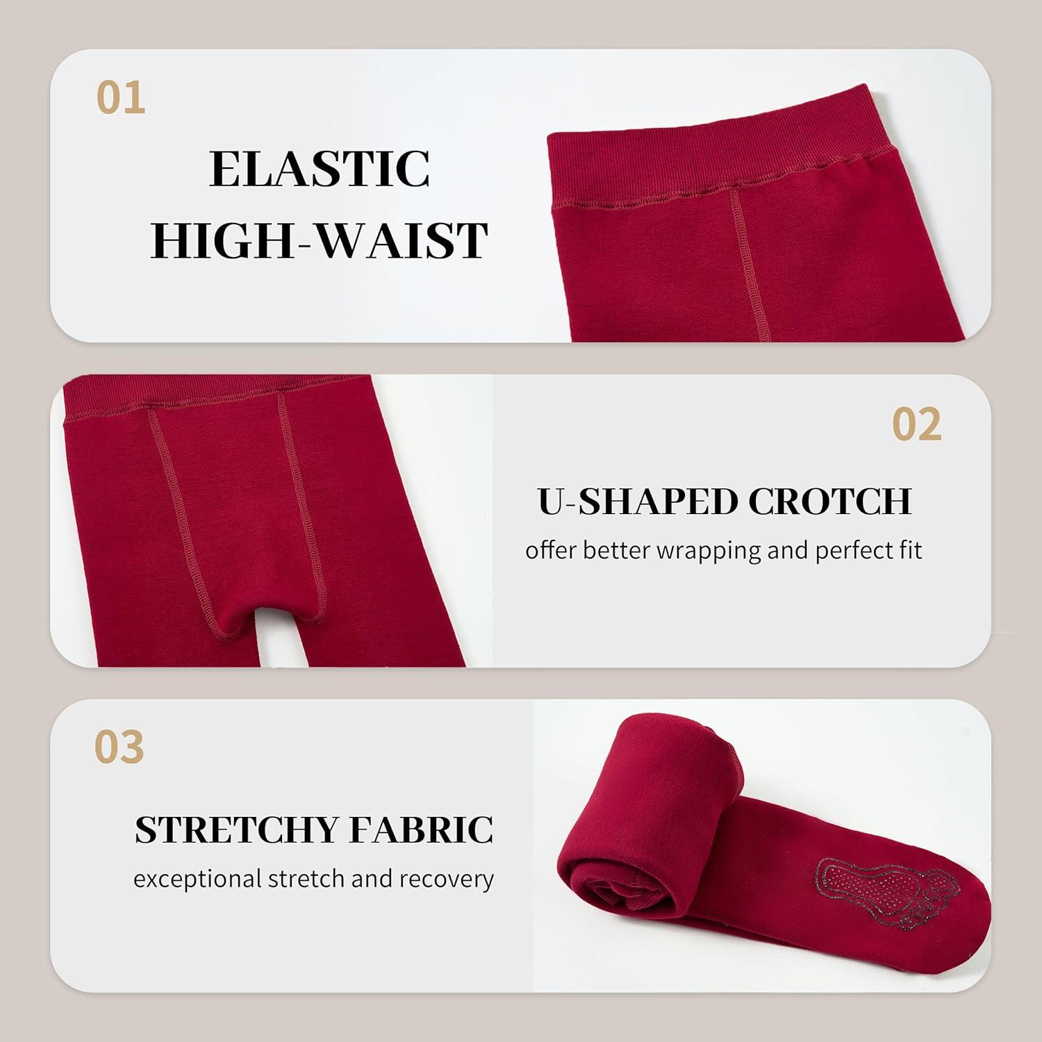 LOLANTA Winter Tights for Girls Stockings Warm Fleece Lined Footed Leggings High Waist Pantyhose(Wine)