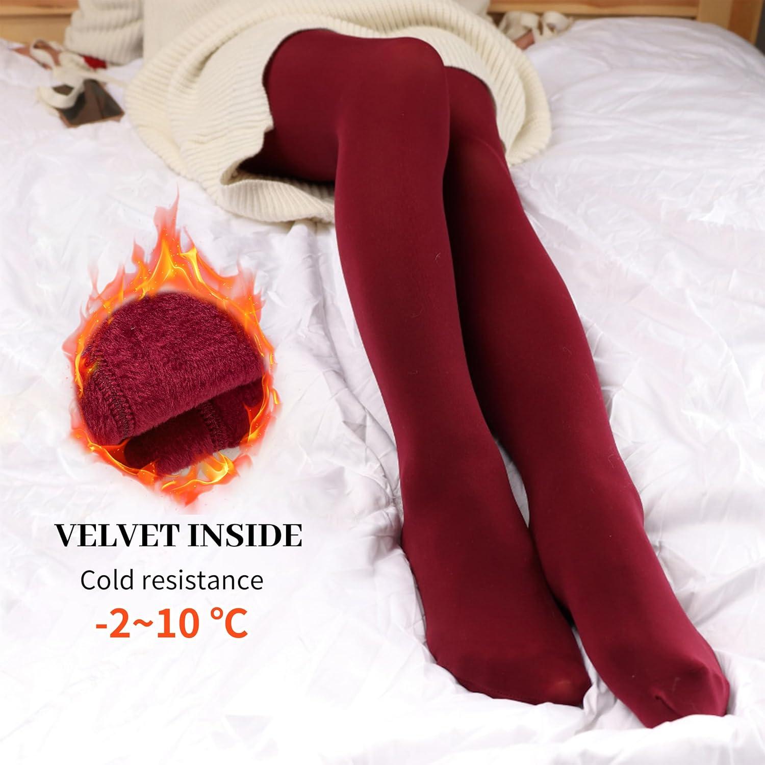 imageLOLANTA Winter Tights for Girls Stockings Warm Fleece Lined Footed Leggings High Waist PantyhoseWine